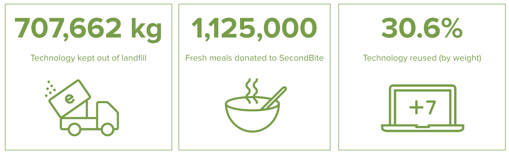 OUR FIRST MAJOR MISSION WAS: to rescue 1/2 million kilos of technology and use its residual value to provide 1 million meals via SecondBite!